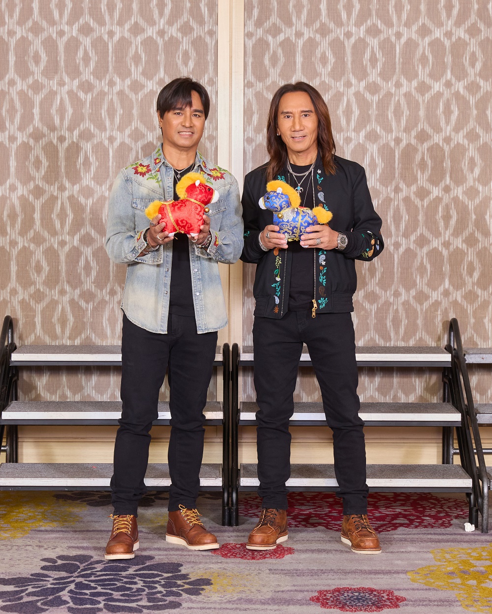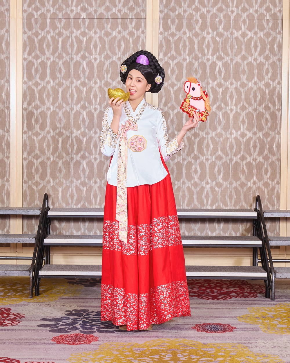 今年华研旺年会主题为「华研一路向前,马上发;鸿运当头,马上红」,Dress code主题颜色为「红」或是谐音「马」等元素。旗下艺人各个大展身手,像是曾沛慈从韩国古装剧中获得灵感,扮成了「MAMA」,她笑说:「韩国古装剧里面,那些尚宫或者甚至是大人、娘娘都会被称为MAMA,好像是一个尊称的意思,因为它二个音节念起来是「马」,所以我就觉得可以扮这个。」她补充道:「本来今年完全没有要走向这个风格的,但我觉得我的灵魂里面,还是没有办法放过自己,Dress code要搞就要好好搞!这次穿越一下时空!」王治平则是出奇招,身穿充满「马啾」(眼睛)的西装现身。